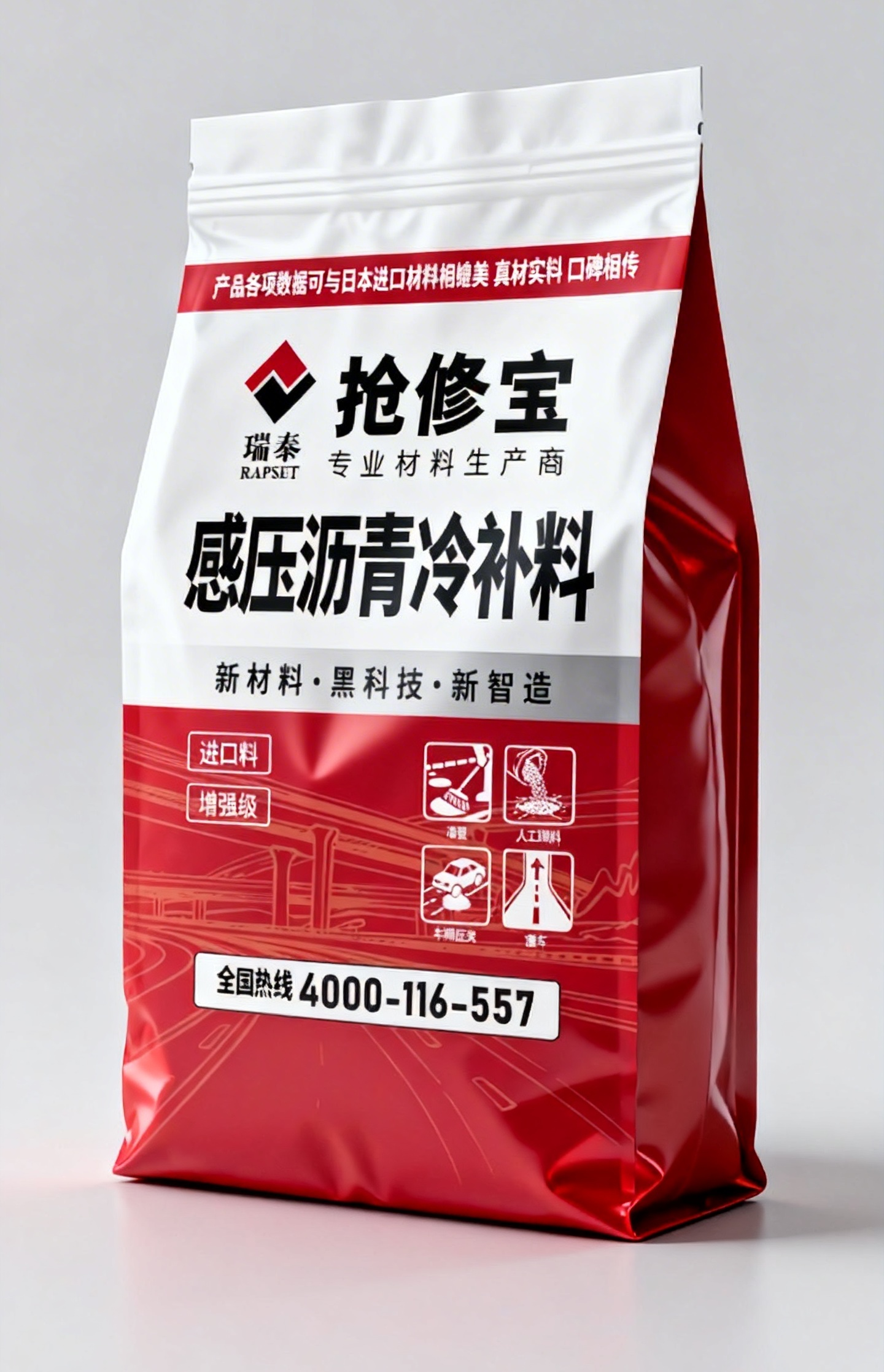 此次推出的感压型沥青冷补料,是瑞泰抢修宝深耕养护领域的又一技术力作,公司凭借成熟的生产工艺、严格的质量管控、完善的技术服务,确保每一批材料性能稳定、品质出众,为市政、高速、农村等各类道路养护提供可靠的材料保障与全方位技术支持。
